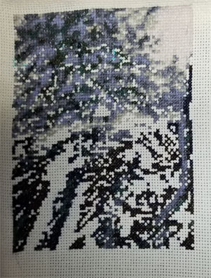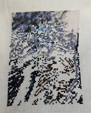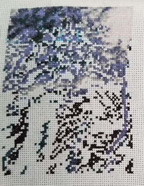 I am still stitching on Black Wolf from Kustom Krafts. I was able to get around 727 stitches in this past weekend. I stitched the 939 very dark navy blue and 934 black avocado green by DMC. Shooting for getting this first page done over this weekend. I am now stitching with DMC 3799 very dark pewter gray.